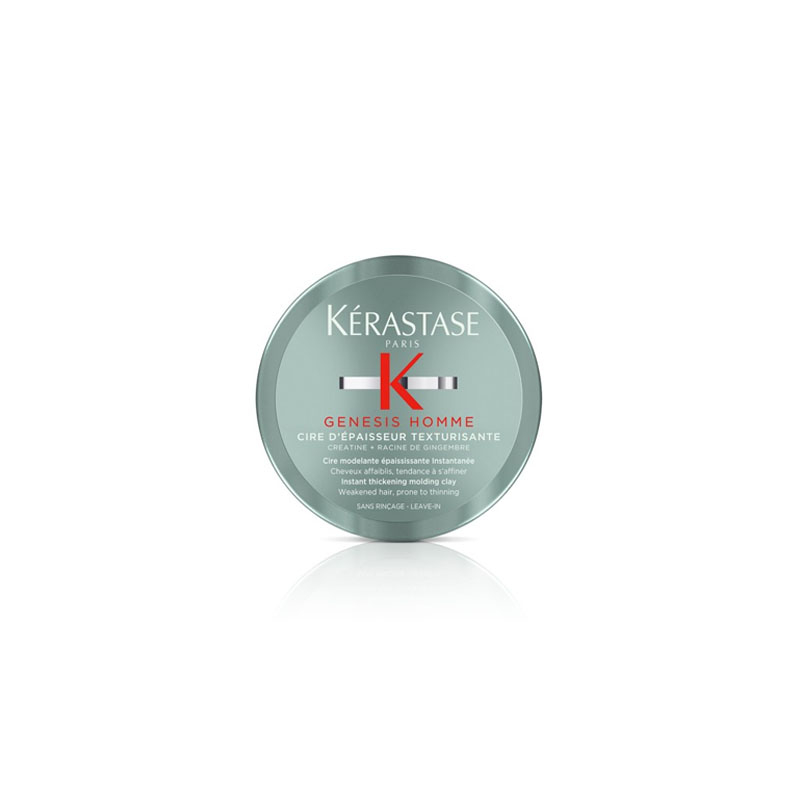 Kerastase Genesis Homme Cire D'Epaisseur Texturisante è una cera modellante per capelli da uomo ad azione ispessente, indicata per capelli indeboliti e inclini al diradamento. Tenuta media e finish opaco, questa cera è molto di più che un semplice prodotto di styling: ridensifica ogni fibra, donando una massa di capelli più folta e dall'aspetto sano.