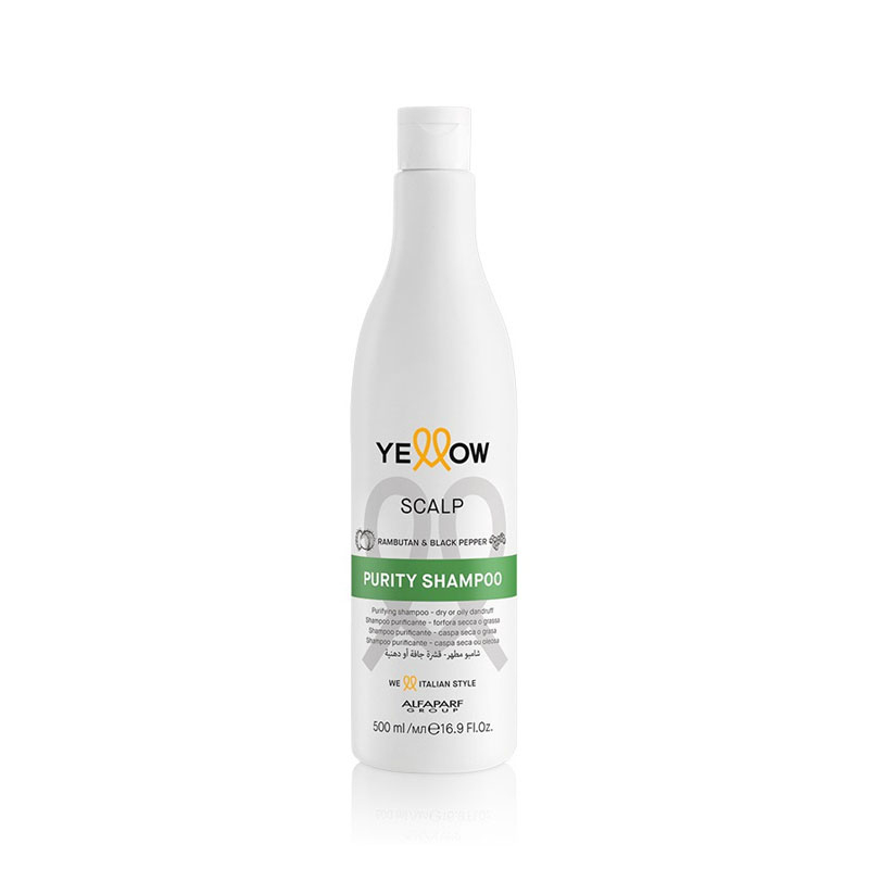 Purity Shampoo della nuova linea Scalp di Alfaparf Yellow è un normalizzante per cute e capelli con forfora. Formula con rambutan, frutto tropicale ricco di vitamina C ed E con proprietà anti-inquinamento, e pepe nero dalle proprietà purificanti e lenitive che controllano e riequilibrano il cuoio capelluto. Oltre a detergere in profondità, esercita azione anti-ricomparsa della forfora e dona immediato sollievo.