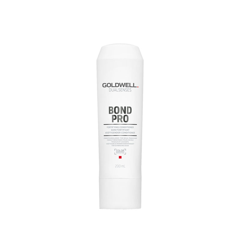 Goldwell Bond Pro è un balsamo fortificante per capelli deboli e fragili, miscelato con il microProTec complex e la Inter-Amino Bond Builder Infuso con proteine di soia rinforzanti. Inoltre le micro-proteine contenute nella sua texture proteggono il colore del capello e consentono alla colorazione di rimanere bella e luminosa molto più a lungo.