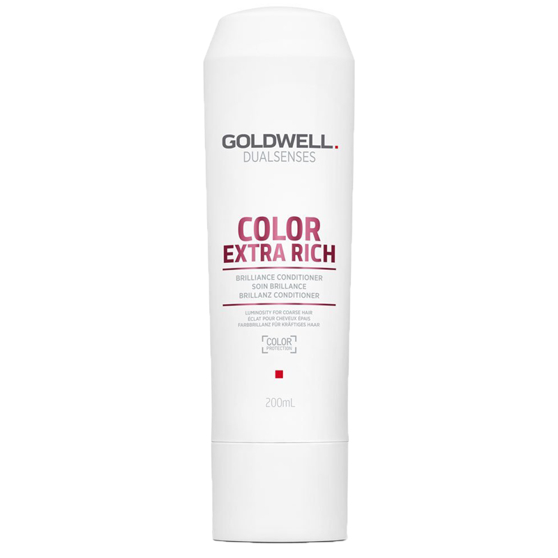Goldwell Dualsenses Color Extra Rich Brilliance Conditioner, un condizionatore appositamente formulato per capelli colorati. Questo condizionatore ha il complesso microPROtec e luminescine.
