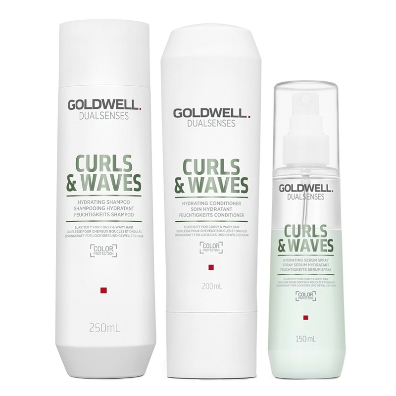 Goldwell. Dualsenses Curls & Waves Hydrating Serum Spray +¿ un trattamento in spray per capelli mossi e ondulati. Protegge dalle alte temperature degli strumenti a caldo e idrata, senza appesantire, i capelli mossi sia naturalmente che con permanente.