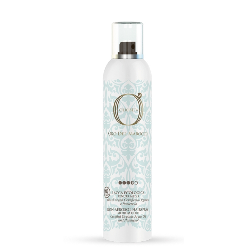 Lacca Ecologica del marchio Olio Seta Oro del Marocco e un prodotto no gas, dalla tenuta media ideale per fissare acconciature senza bagnare ne increspare leffetto finale dello styling.