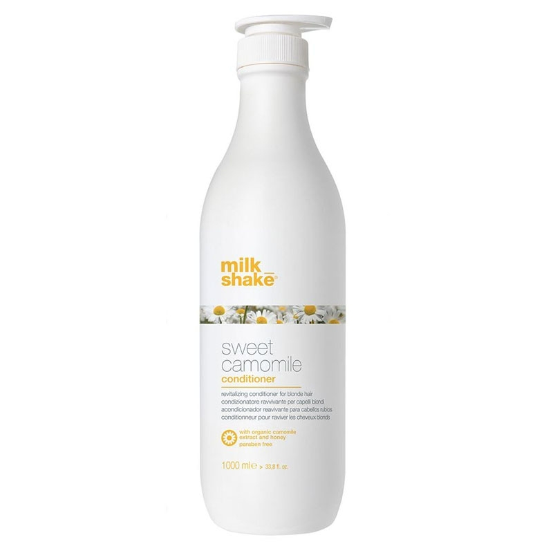 Milk Shake Sweet Camomile Conditioner è un condizionatore che condiziona e districa dolcemente i capelli. Lestratto di fiori di camomilla organica e il miele organico rendono i capelli lucenti e setosi e leggeri. Contiene Integrity 41 ad azione rigenerante e protettiva del colore. Senza parabeni.